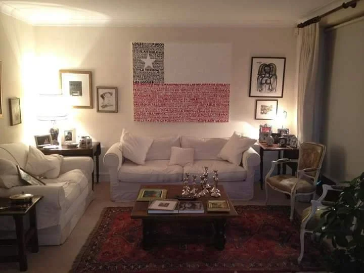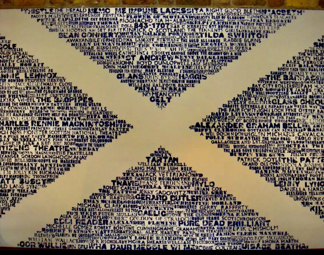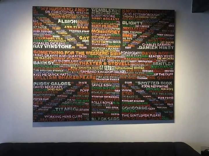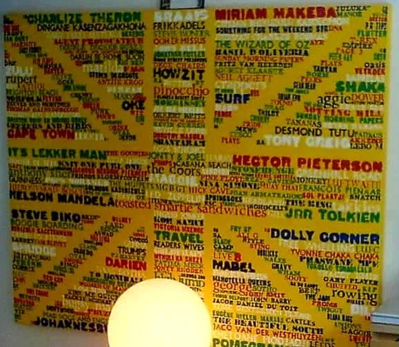 Choose the flag of your choice, I will collaborate with you on the cultural content, adding personalised entries. Each letter is applied individually, giving the overall piece an organic spin as opposed to a generic computer print out.